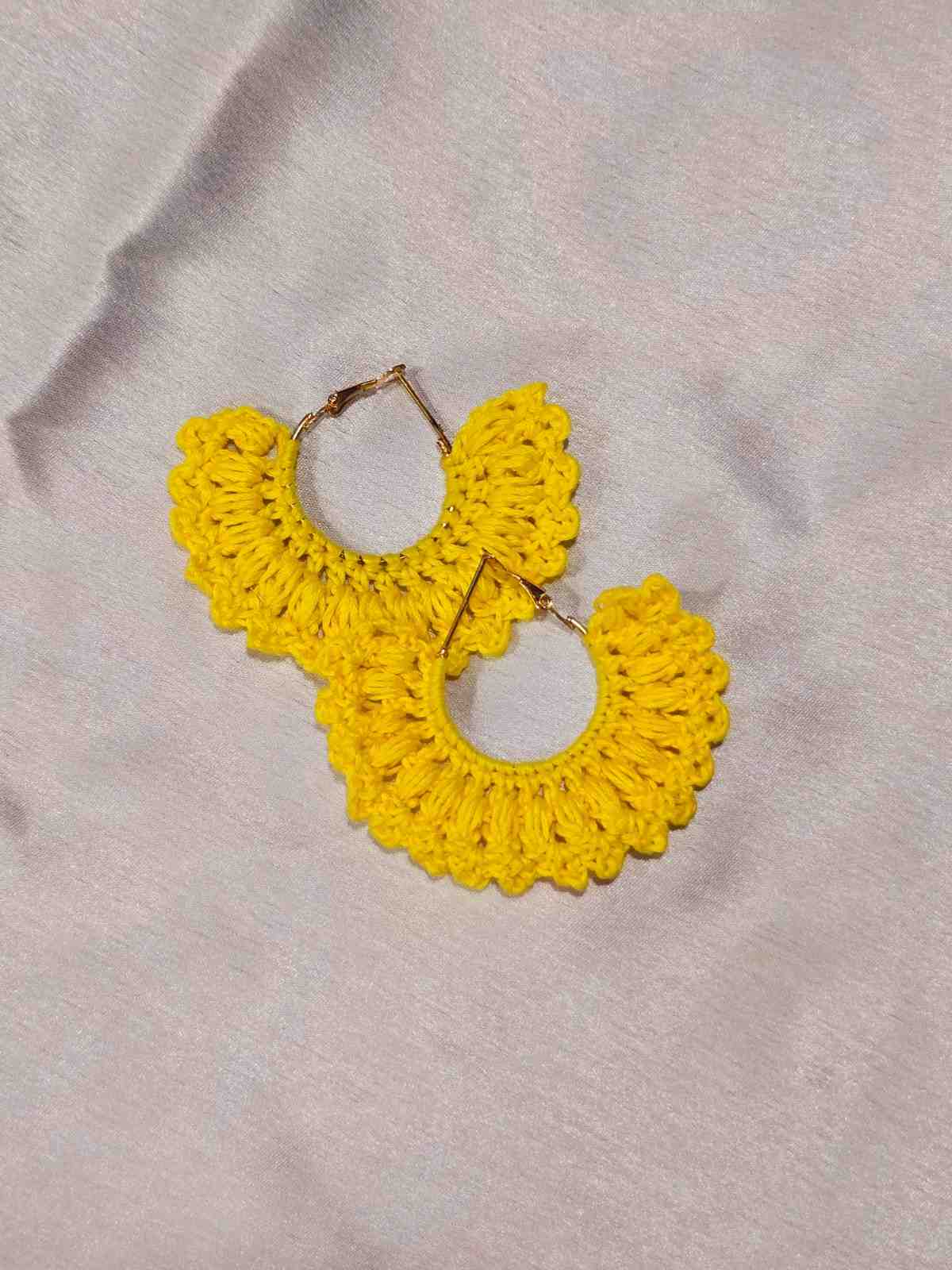 Sunshine Crochet Hoop Earrings – Handmade Yellow Statement Jewelry